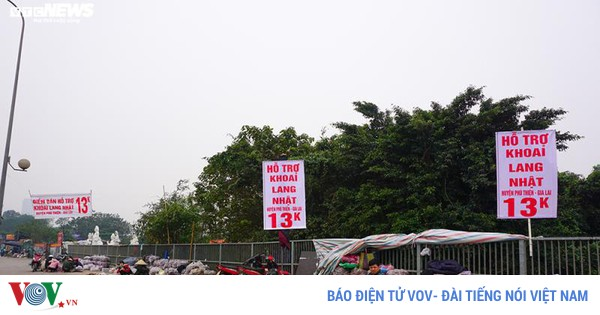 VOVVN - VOV.VN - Nhiều điểm bán kêu gọi mua ủng hộ nông dân trồng khoai lang huyện Phú Thiện, Gia Lai xuất hiện trên đường phố Hà Nội những ngày gần đây.