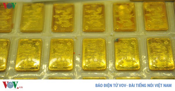 VOVVN - VOV.VN - Giá vàng thế giới tương đương hiện tương đương 44,58 triệu đồng/lượng, thấp hơn giá bán vàng SJC khoảng 50.000 đồng/lượng.