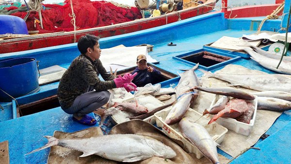 VOVVN - VOV.VN - Các tàu đánh bắt cá trong chuyến biển cuối năm đều đạt sản lượng cao, mỗi tàu từ 3 – 5 tấn cá cùng với giá cá tăng cao nên ngư dân đều...
