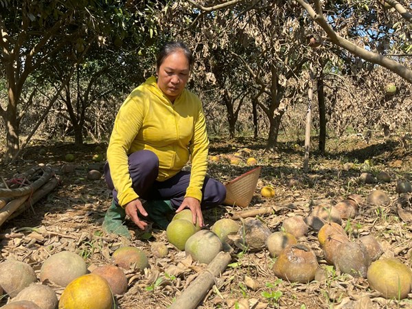 VOVVN - VOV.VN - Xót xa thay khi vụ bưởi năm nay chuẩn bị thu hoạch, nước lũ đổ về gây ngập khiến nhiều hộ dân trồng bưởi Đại Minh trắng tay.