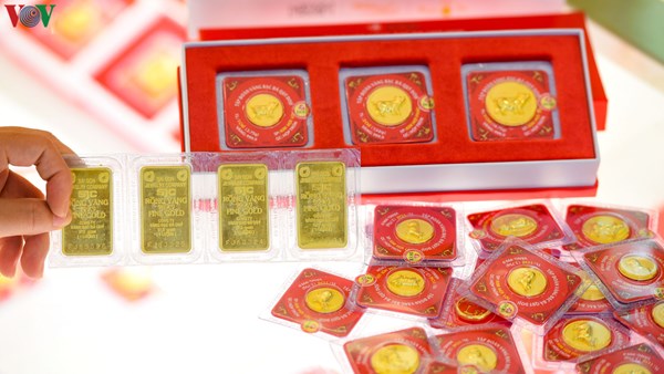 VOVVN - VOV.VN - Hiện giá bán vàng SJC đã giảm về 48,20 triệu đồng/lượng trong khi giá vàng thế giới giảm nhanh còn 1.611 USD/oz.