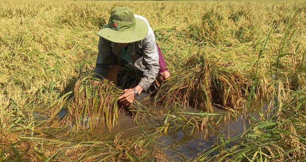 Lúa Thu Đông đổ ngã do mưa dông, nông dân Hậu Giang thiệt hại đủ đường