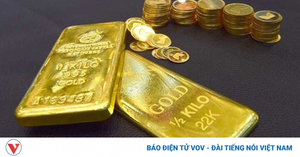 VOVVN - VOV.VN - Giá vàng trong nước tiếp tục tăng trong khi vàng thế giới giảm nhẹ, vàng thế giới vẫn thấp hơn 15,49 triệu đồng/lượng so với giá vàng SJC bán ra cùng thời điểm.
