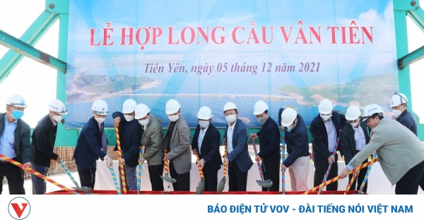 VOVVN - VOV.VN - Sáng nay (5/12), cầu Vân Tiên - cây cầu dài nhất trên tuyến cao tốc Vân Đồn - Móng Cái đã chính thức hợp long.