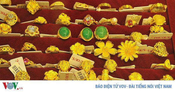 VOVVN - VOV.VN - Giá vàng SJC tăng sát mốc 50 triệu đồng/lượng trong khi giá vàng thế giới lại giảm nhẹ do áp lực chốt lời trong mấy phiên giao dịch liền trước.