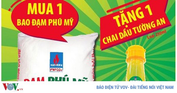 VOVVN - VOV.VN - Khách hàng khi mua 1 bao Đạm Phú Mỹ loại bao 50 kg tại các điểm bán có thông báo khuyến mại sẽ được tặng 1 chai dầu ăn Tường An 250 ml/chai.