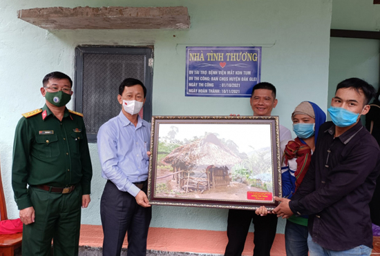 Sáng 17/11, ông Dương Văn Trang đã tặng nhà tình thương cho hộ gia đình A Ngân và Y Lim, ở làng Đung, xã Mường Hoong, huyện Đăk Glei. Ngôi nhà được xây dựng với diện tích 53m2 trị giá 50 triệu đồng do Bí thư Tỉnh ủy Kon Tum kêu gọi nguồn hỗ trợ và cán bộ chiến sỹ Ban Chỉ huy Quân sự huyện Đăk Glei trực tiếp xây dựng tặng hộ dân./.