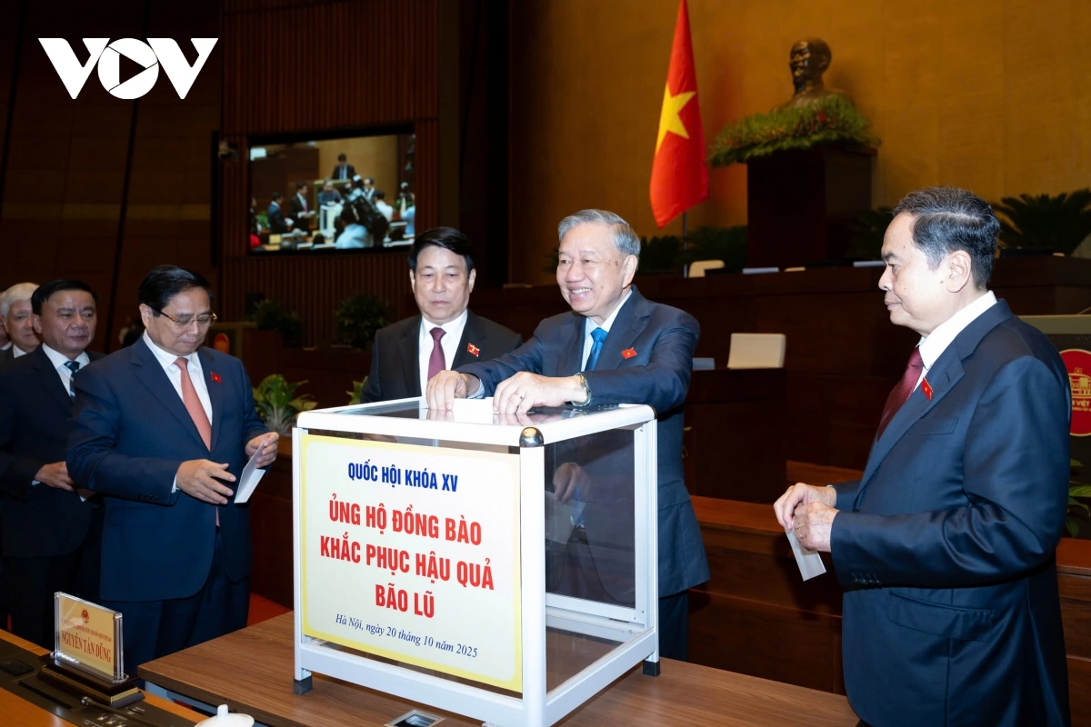 Quốc hội đã tổ chức quyên góp ủng hộ đồng bào khắc phục hậu quả thiên tai, bão lũ với mức ủng hộ tối thiểu tương đương một ngày lương