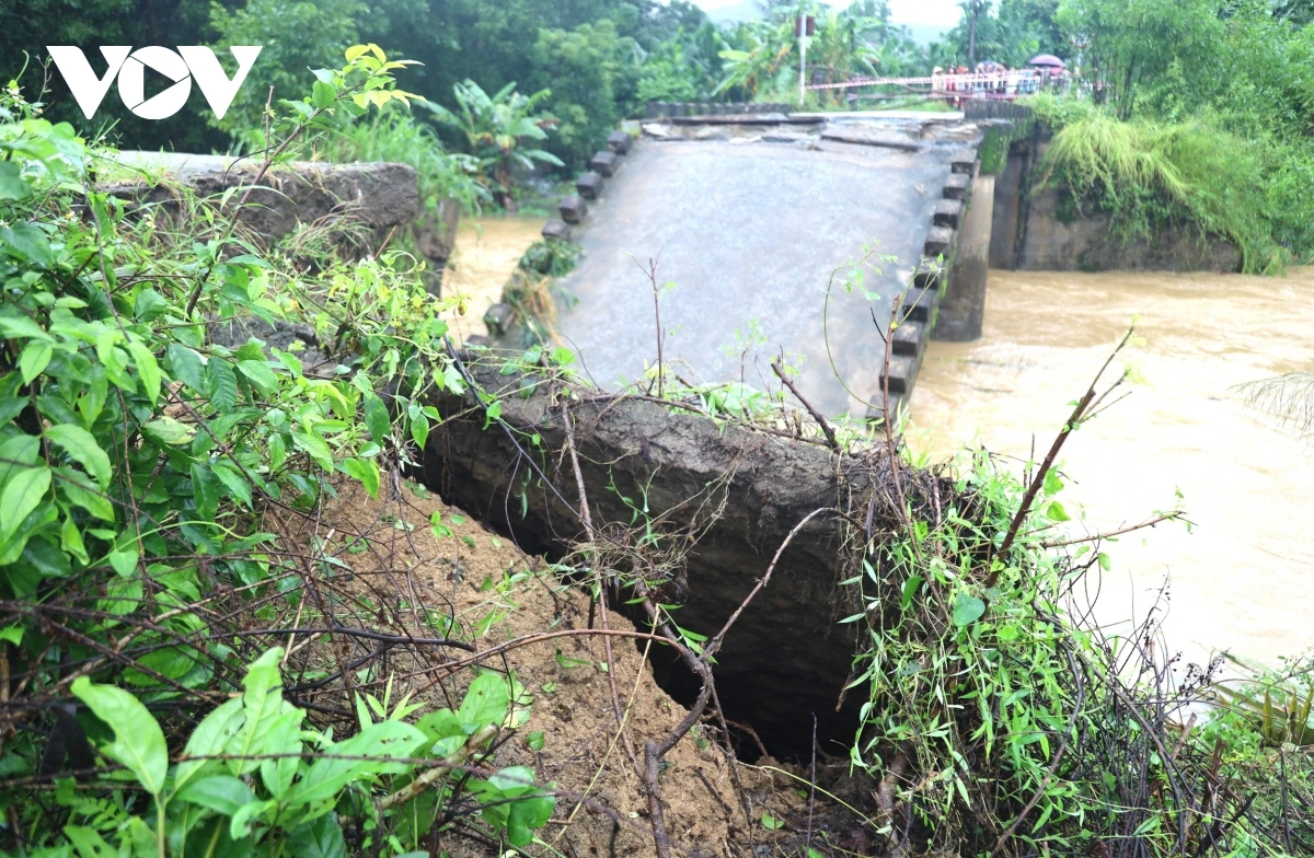 Ông Đỗ Tâm Hiển, Phó Chủ tịch UBND tỉnh Quảng Ngãi đã đến hiện trường chỉ đạo công tác khắc phục. Ông Đỗ Tâm Hiển cho biết, tỉnh chỉ đạo các đơn vị triển khai giải pháp vận chuyển lương thực, thuốc men và nhu yếu phẩm cho 1.820 nhân khẩu đang bị chia cắt. Đây là tuyến độc đạo, vì vậy tỉnh giao Sở Nông nghiệp và Môi trường phối hợp với Sở Xây dựng khẩn trương lắp dựng cầu tạm, đảm bảo việc đi lại của người dân.