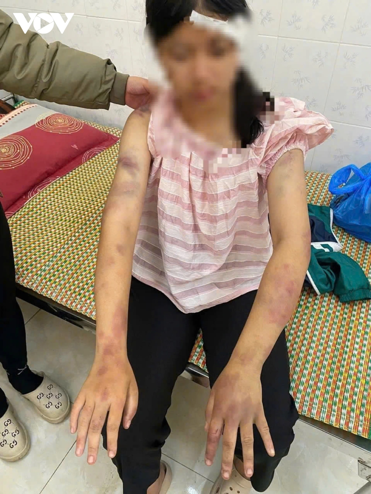 Cháu P.A. sau đó vùng chạy thoát và được người dân đưa đi cấp cứu. Cơ sở y tế xác định cháu bị bầm tím ở nhiều vùng trên cơ thể.