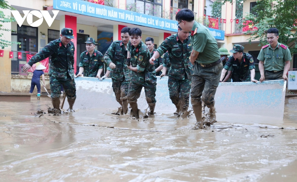 Tỉnh cũng huy động hơn 3.600 cán bộ, chiến sỹ, bộ đội thường trực và dân quân tự vệ cùng nhiều phương tiện, trang thiết bị khẩn trương khắc phục hậu quả bão lũ. Hơn 650 cán bộ, chiến sĩ Quân khu 2 đã được tăng cường, cùng với lực lượng vũ trang địa phương và lực lượng tại chỗ nhanh chóng vào cuộc với tinh thần khẩn trương, quyết liệt khắc phục hậu quả thiên tai.