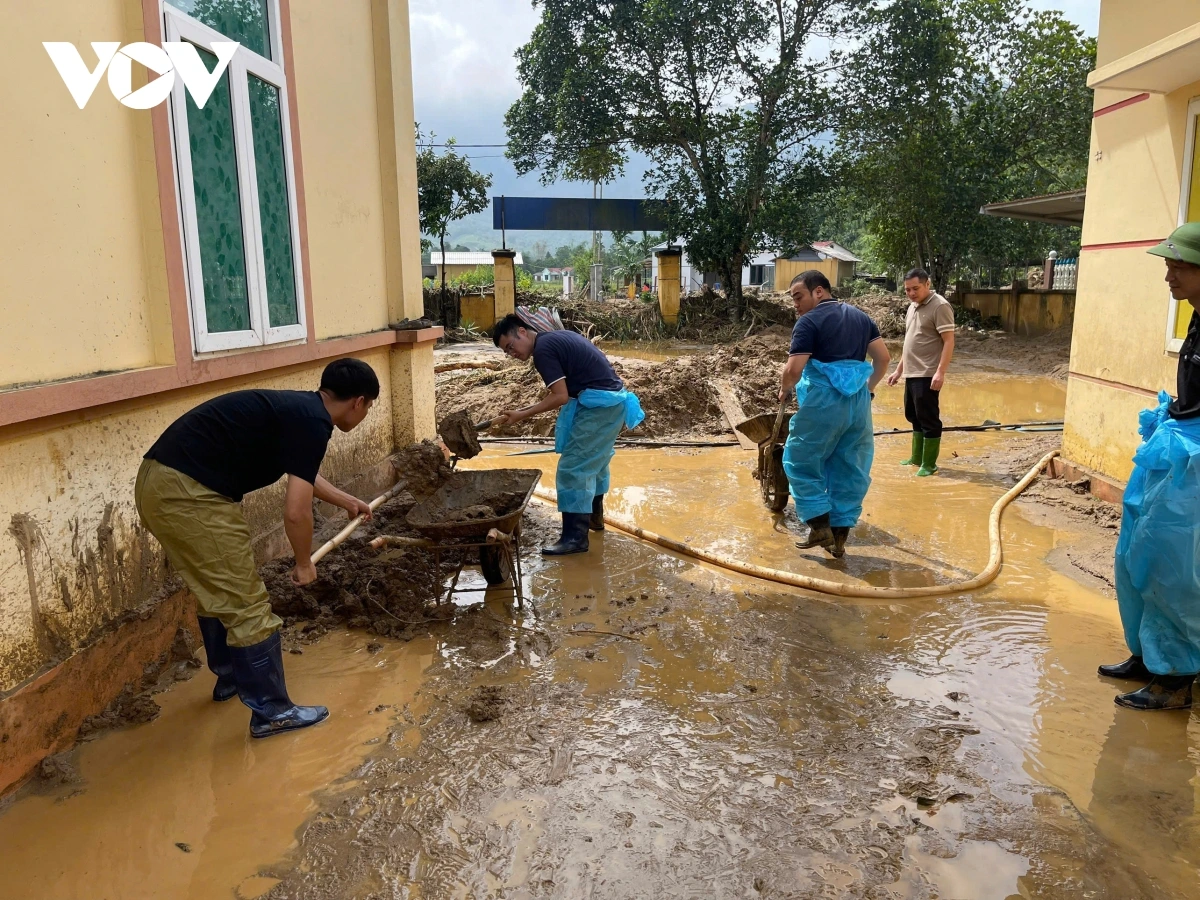 Ngay sau khi nước rút, ngành y tế tỉnh Lào Cai đã huy động lực lượng từ tỉnh đến cơ sở, phối hợp cùng chính quyền địa phương hướng dẫn người dân dọn vệ sinh nhà cửa, khử khuẩn môi trường và xử lý giếng nước. Tại nhiều khu dân cư, cán bộ y tế trực tiếp cấp phát Cloramin B và hướng dẫn người dân cách khử trùng nguồn nước, vệ sinh đồ dùng sinh hoạt.