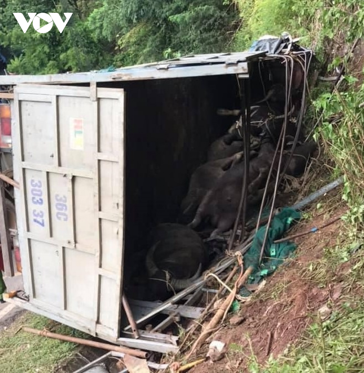Vụ tai nạn cũng làm giao thông 2 chiều ùn tắc khoảng 30 phút và làm 5 con trâu bị chết, nhiều con khác bị thương.