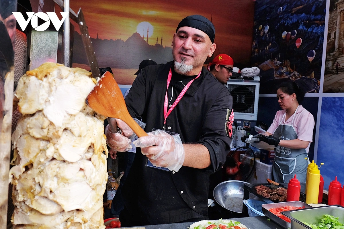 Đầu bếp Thổ Nhĩ Kỳ đang thực hiện món bánh cuốn thịt gà nướng nổi tiếng.