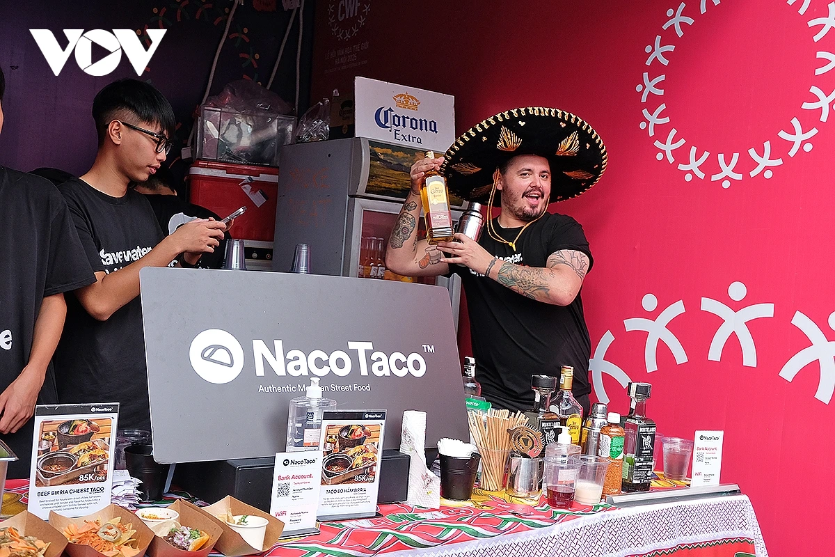 Đầu bếp tại gian hàng ẩm thực Mexico (bên phải) vui vẻ khoe mình có tên tiếng Việt là "Long râu". Anh bày tỏ: Tôi rất thích những lễ hội âm thực như thế này, nơi mọi người có thể trải nghiệm sự khác biệt, đặc sắc trong văn hóa ẩm thực từ khắp nơi trên thế giới. Thông qua ẩm thực, những nền văn hóa trên thế giới sẽ đến gần nhau hơn. Ẩm thực giúp kết nối mạnh mẽ những nền văn hóa, cho dù có sự khác biệt.