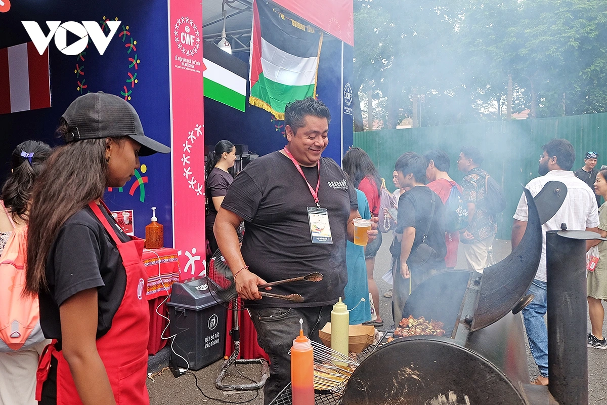 VOV.VN - Chiều 11/10, ngay khi cơn mưa lớn trên địa bàn thành phố Hà Nội kết thúc, rất dông người dân, du khách đã đổ về Khu di tích Hoàng thành Thăng Long để trải nghiệm các hoạt động văn hóa, ẩm thực tại Lễ hội Văn hóa Thế giới Hà Nội lần thứ nhất năm 2025.