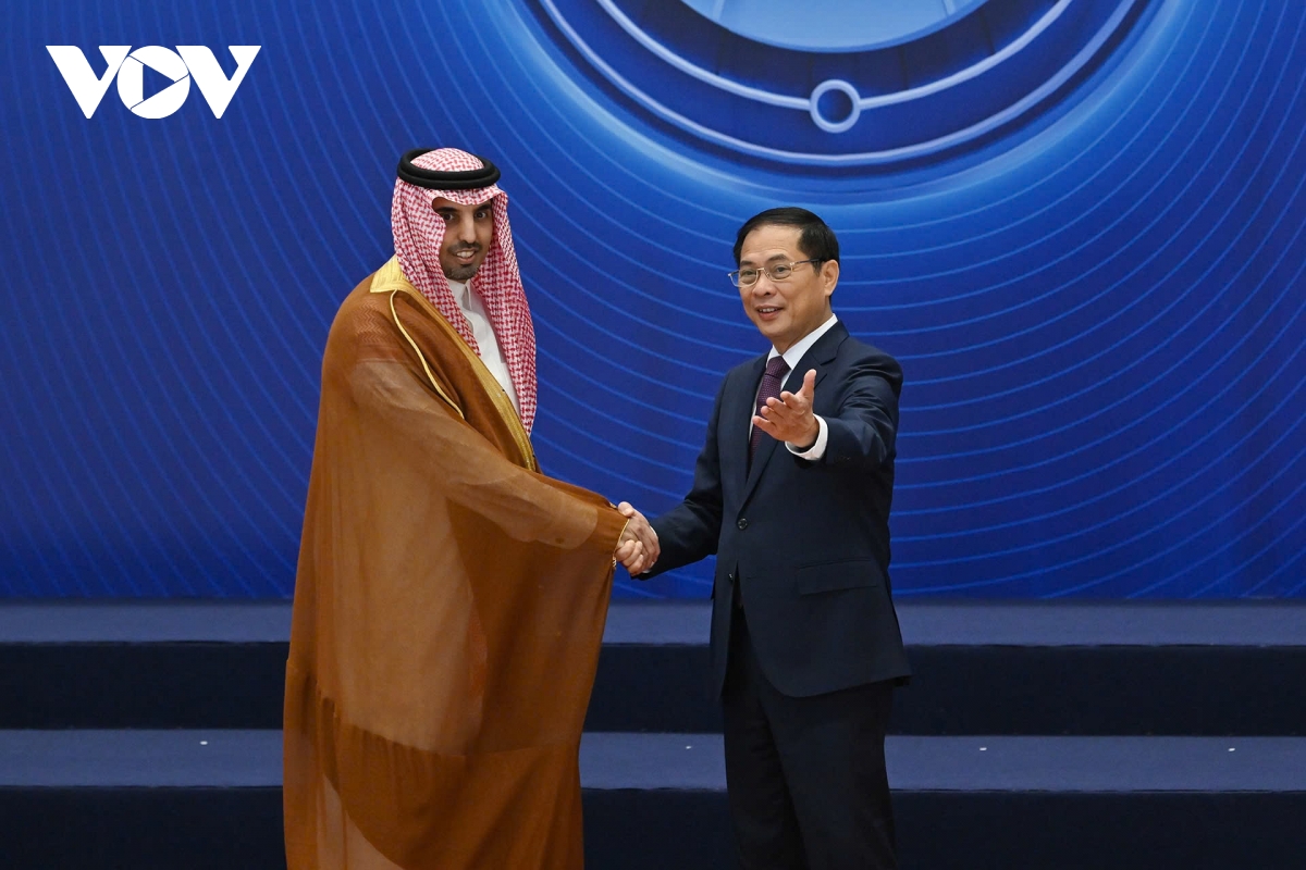 Phó Thủ tướng Bùi Thanh Sơn đón các đại biểu tham dự Lễ mở ký Công ước Hà Nội.