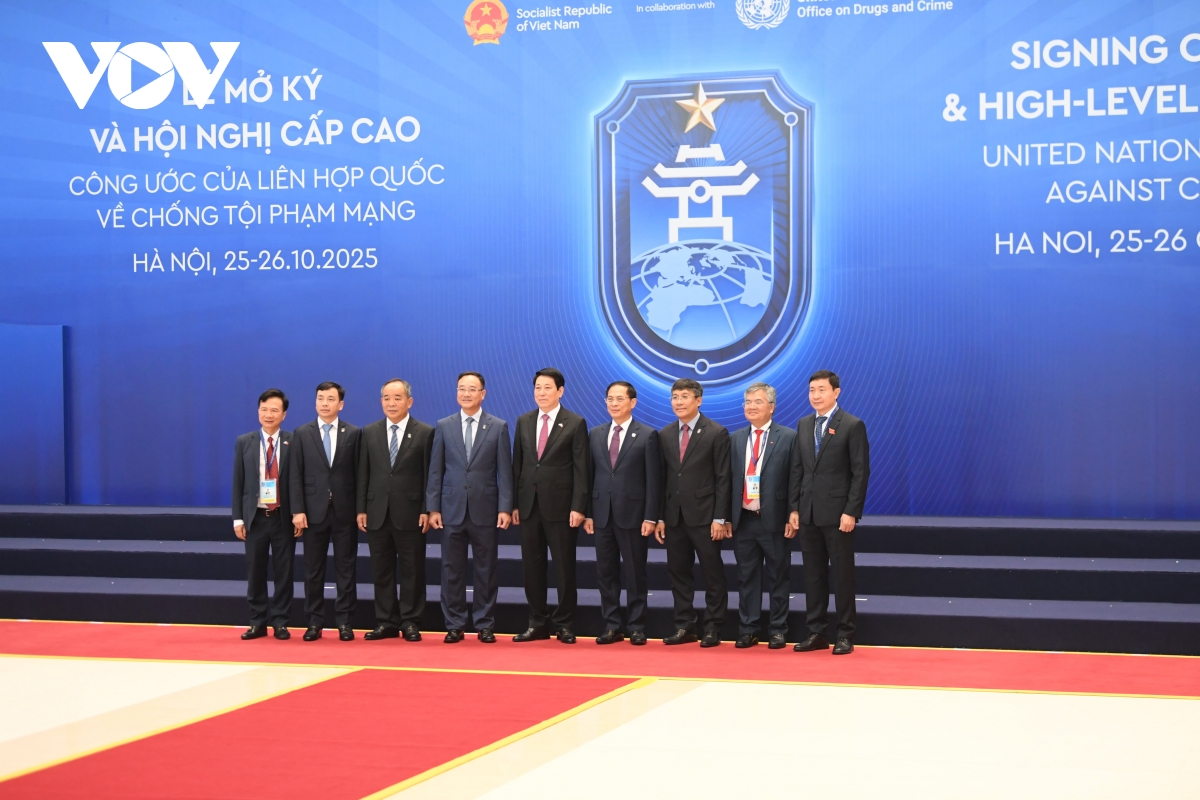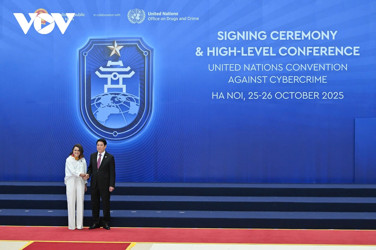 Trước phiên khai mạc, Chủ tịch nước Lương Cường chủ trì lễ đón chính thức, chụp ảnh chung với các trưởng đoàn dự Lễ mở ký và Hội nghị cấp cao Công ước Liên hợp quốc về chống tội phạm mạng, đồng thời cùng đại biểu tham quan triển lãm ảnh về Việt Nam và quan hệ Việt Nam – Liên hợp quốc.