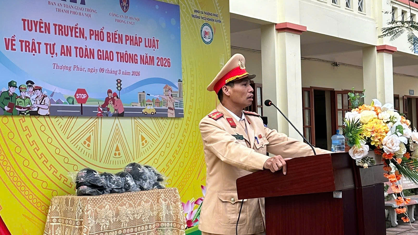 | Người đàn ông lạ mặt bất ngờ xuất hiện trên sân khấu, cắt ngang bài phát biểu của diễn viên Quốc Trường. |