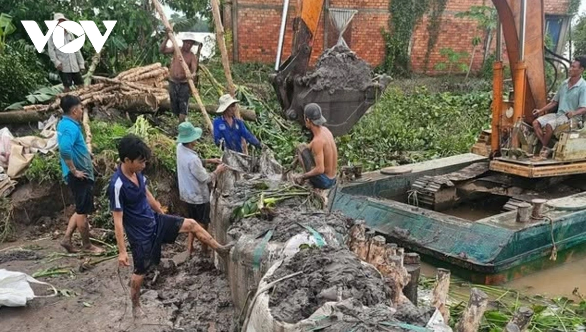 Sau khi sạt lở xảy ra, ngành chức năng đã vận động người dân khắc phục hậu quả theo phương châm “4 tại chỗ”, kết hợp cơ giới tiến hành gia cố tạm thời các vị trí bị sạt, vỡ, nước tràn qua đê bao. Hiện, nước còn đang gây ngập vườn cây ăn trái của một số hộ dân, nhưng chưa thể thống kê được diện tích bị ảnh hưởng trực tiếp cũng như đánh giá thiệt hại cụ thể. UBND xã đang khẩn trương huy động lực lượng tại chỗ hỗ trợ các hộ dân bơm tát, nhằm hạn chế tối đa thiệt hại.