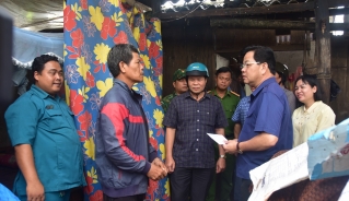 Sáng 29/10 đoàn công tác của UBND tỉnh Cà Mau đã đến thăm hỏi, động viên và hỗ trợ bước đầu cho các hộ dân bị thiệt hại.