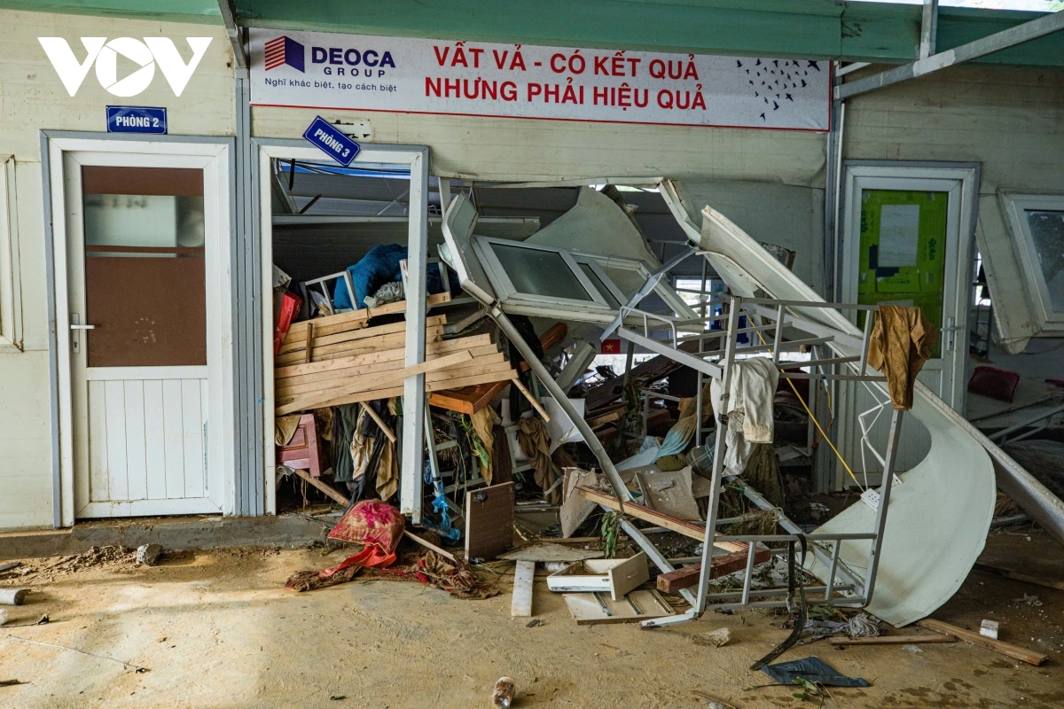 Ở nơi từng là khu nhà ăn ở của cán bộ, công nhân viên Ban Điều hành dự án, một tốp công nhân đang khẩn trương dọn dẹp hiện trường. Dưới chân là ngổn ngang những chăn gối, giường tủ, vật dụng sinh hoạt, đất đá và cành lá khô.