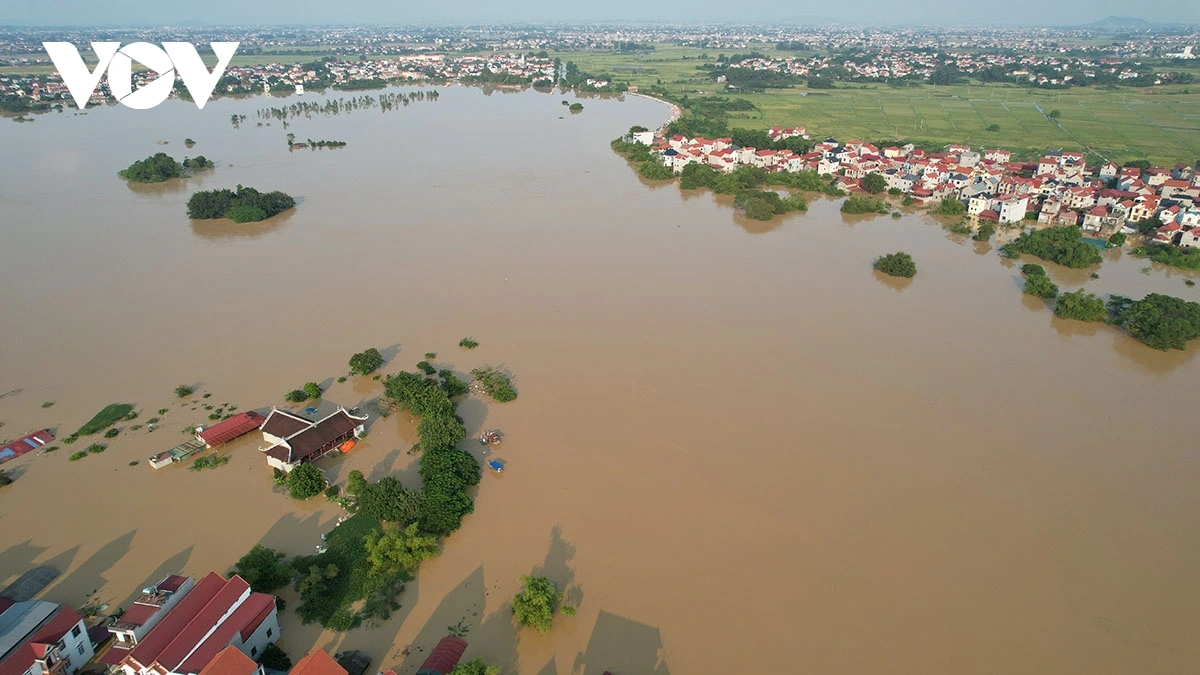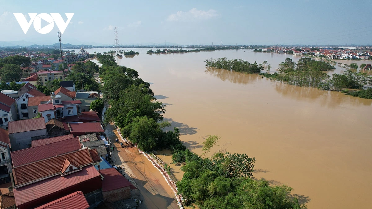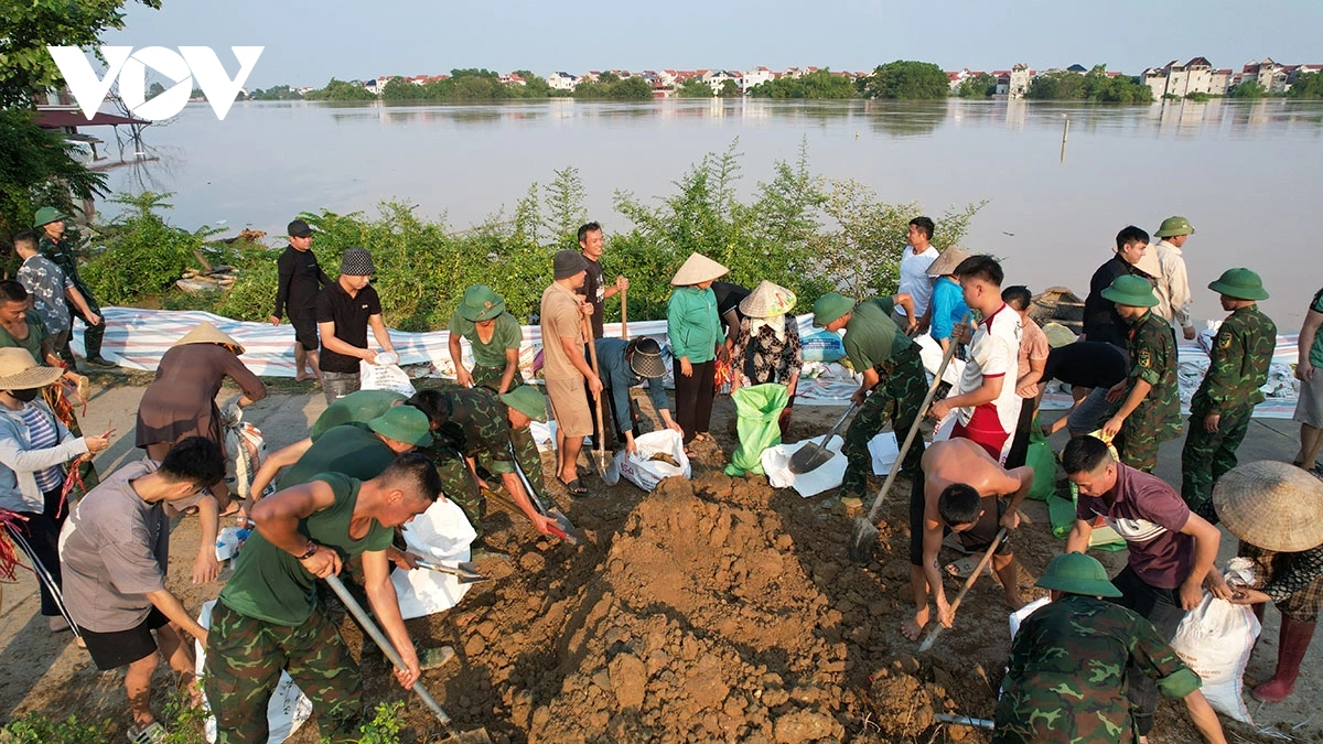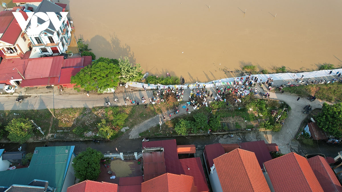 Theo dự báo Đài Khí tượng thủy văn Bắc Bộ khoảng 21h ngày 9/10, lũ trên sông Cầu, Cà Lồ đạt đỉnh ở mức 10,2m trên sông Cầu và 9,7m trên sông Cà Lồ. Lo ngại nước dâng cao hàng trăm người dân và các lực lượng chức năng tại xã Đa Phúc, thành phố Hà Nội khẩn trương gia cố các đoạn đê xung yếu nước tràn qua.