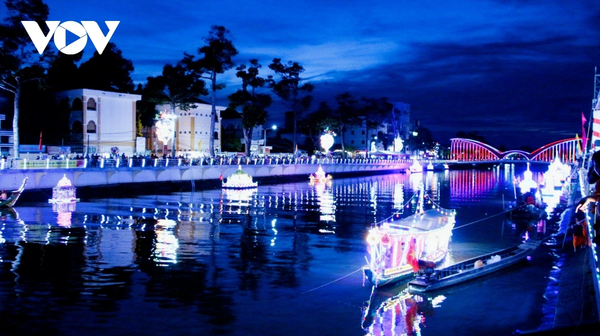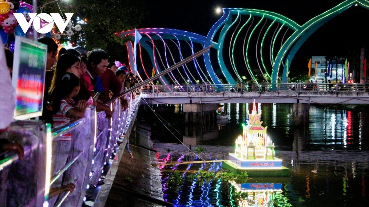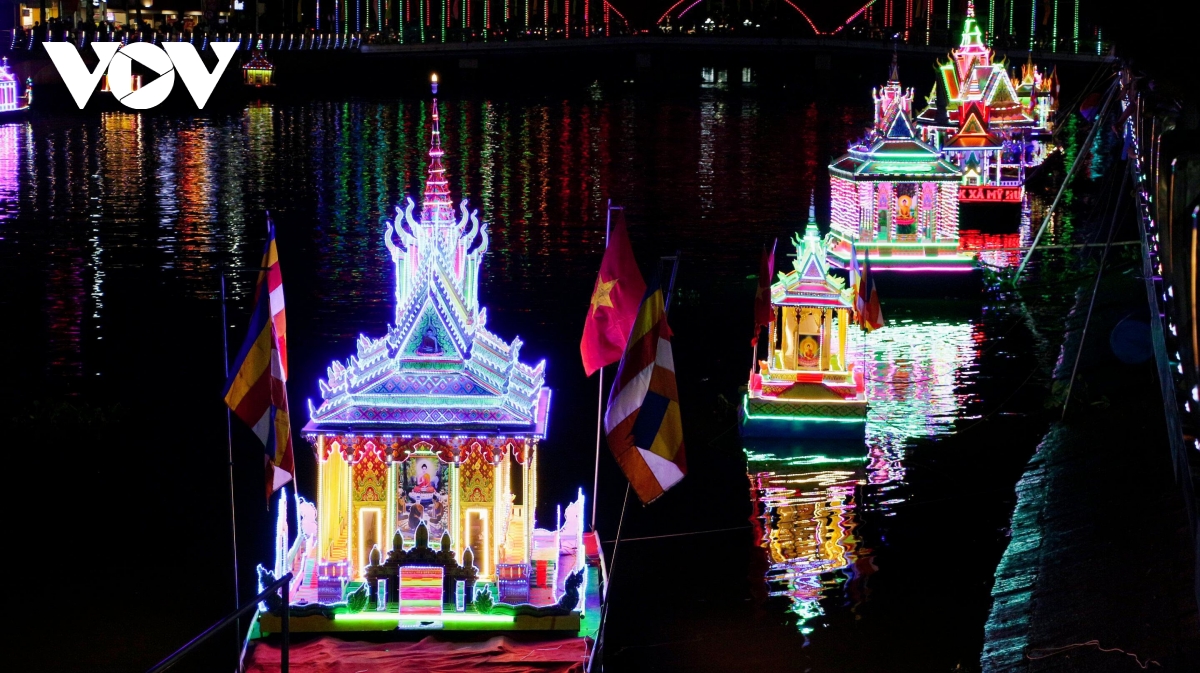 VOV.VN - Nằm trong chuỗi các hoạt động của Lễ hội Óoc Om Bóc - Đua ghe Ngo thành phố Cần Thơ năm 2025, tối 3/11, tại dòng sông Maspero, thành phố Cần Thơ đã diễn ra hoạt động trình diễn Lôiprotip (thả Đèn nước) và ghe Cà Hâu để phục vụ người dân và du khách đến với lễ hội.