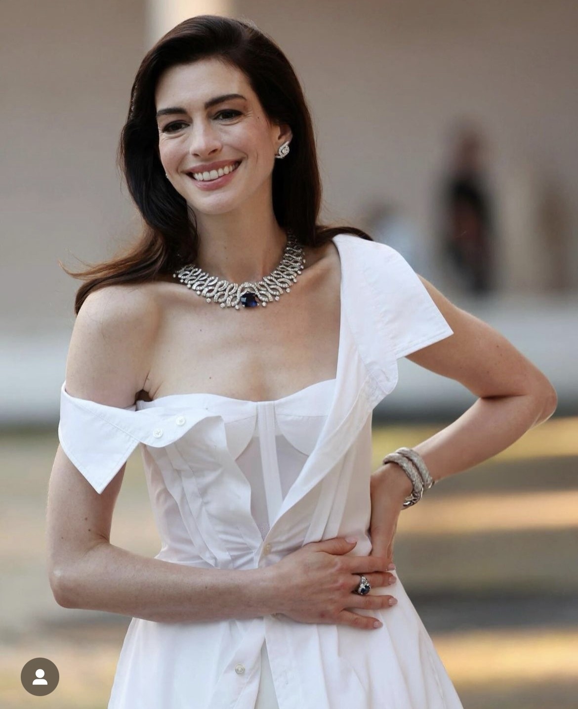 Anne Hathaway sang trọng, nữ tính trong mẫu váy trắng của Gap.