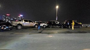 5 ô tô "dồn toa" trên cầu Nhật Tân, Hà Nội