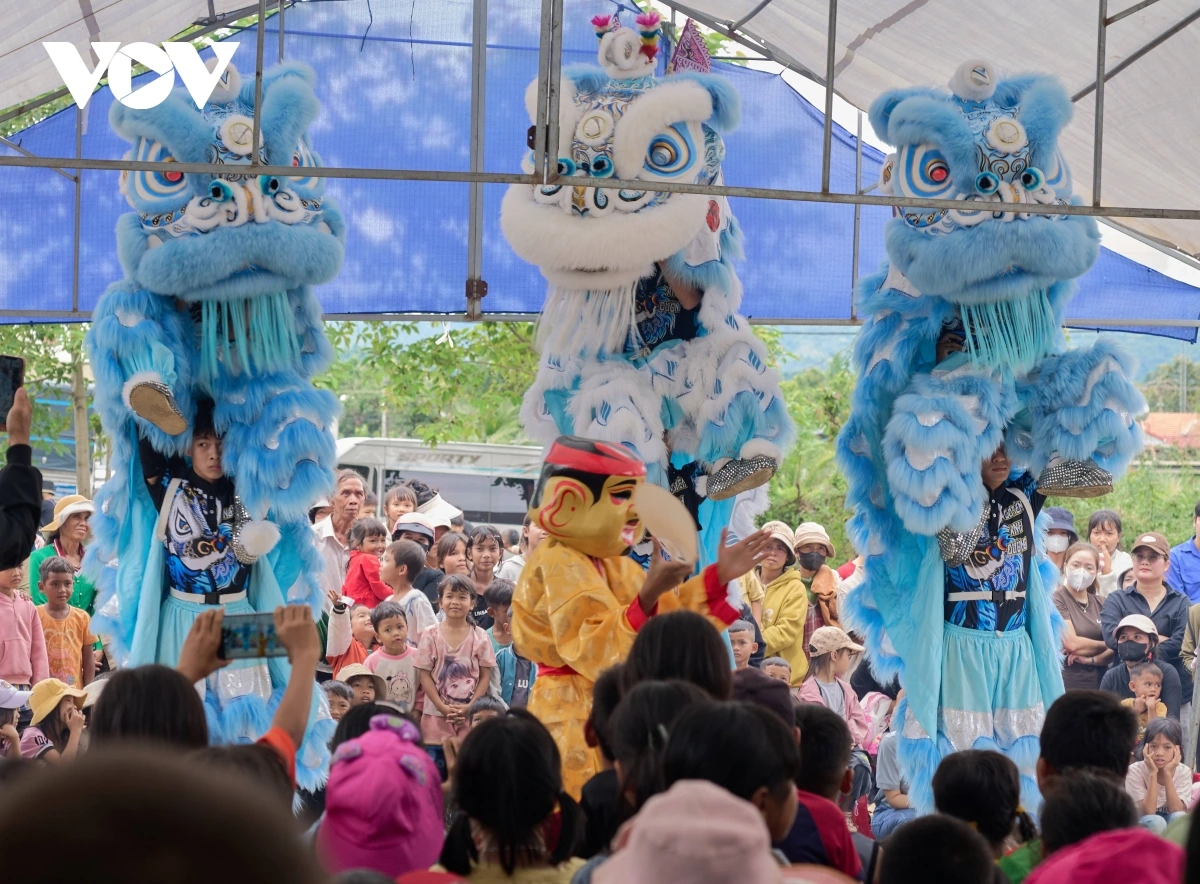 Tiếng trống lân rộn rã khiến các em nhỏ thích thú