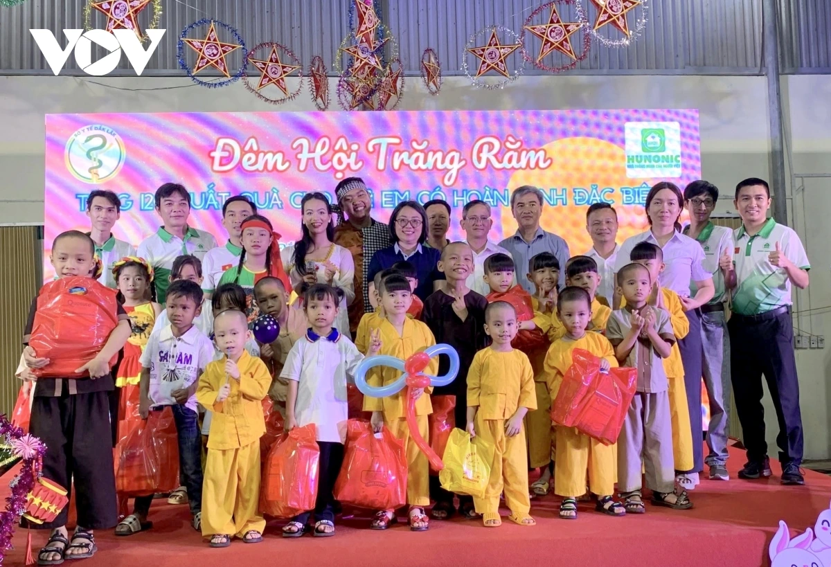 Niềm vui Trung thu còn đến với các em nhỏ tại Trung tâm Bảo trợ xã hội và trẻ em tỉnh Đắk Lắk qua chương trình Đêm hội trăng rằm do Sở Y tế tỉnh tổ chức. Các em được tham gia thi làm lồng đèn, văn nghệ, phá cỗ và nhận quà, học bổng.