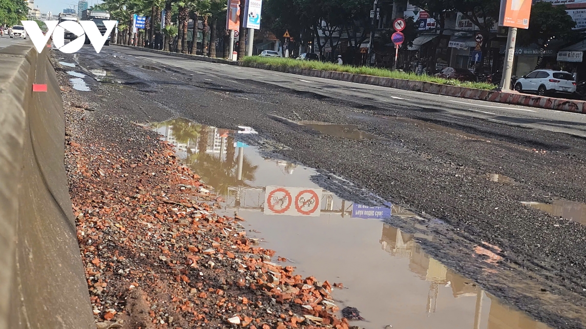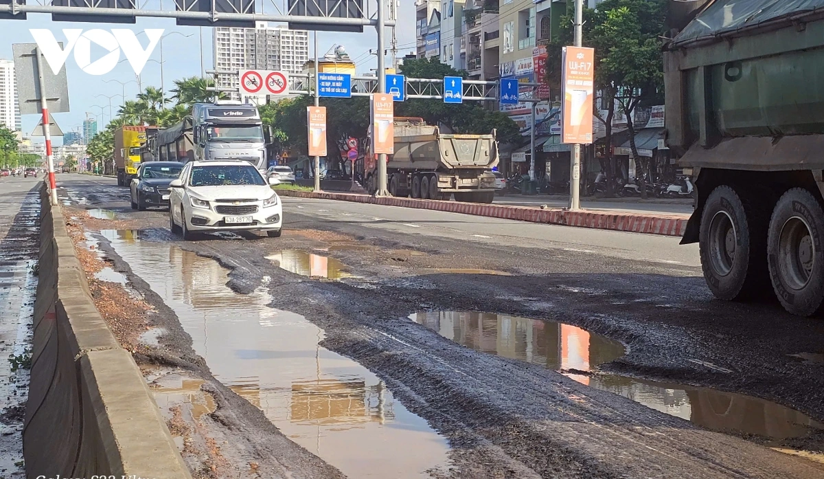 Trời mưa, nước đọng thành vũng tại các ổ gà gây mất an toàn giao thông. Các đoạn đường hư hỏng khu vực nội đô có lượng người, phương tiện qua lại rất lớn, nhất là xe tải, xe ben, xe container trọng tải lớn, xe du lịch....