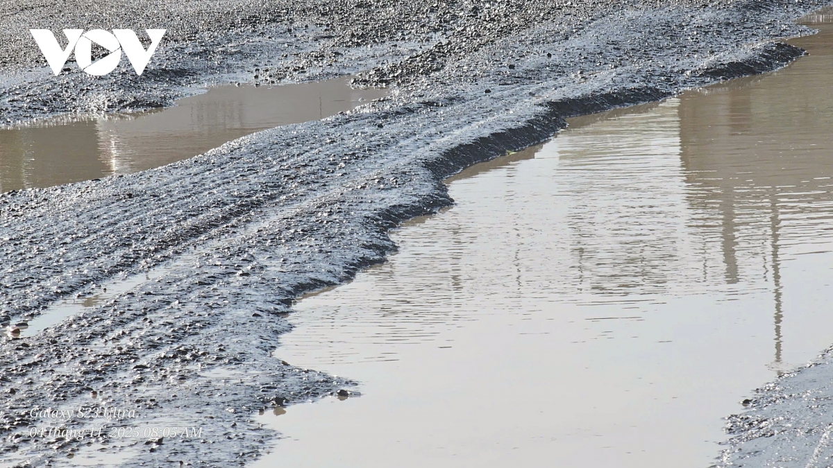 Do đường bị hư hỏng, các phương tiện vận tải di chuyển chậm. Đơn vị quản lý phải dùng gạch vụn đổ tạm xuống các ổ gà, vị trí mặt đường hư hỏng để hạn chế tai nạn.