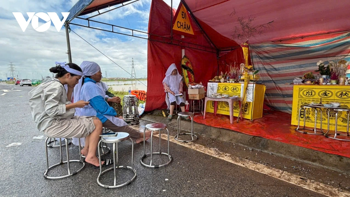 Đến trưa 1/10, trong lán nhỏ ven đường Quốc lộ, thi thể hai bà cháu đã được gia đình đưa đi hỏa táng và đặt trong hai tiểu quách với ban thờ tạm thời. Nỗi đau chồng nỗi đau với gia đình là chưa thể đưa tiễn hai người thân về nơi yên nghỉ, khi đường về làng, về nhà vẫn ngập sâu. Khu nghĩa trang cũng chìm trong nước bạc.