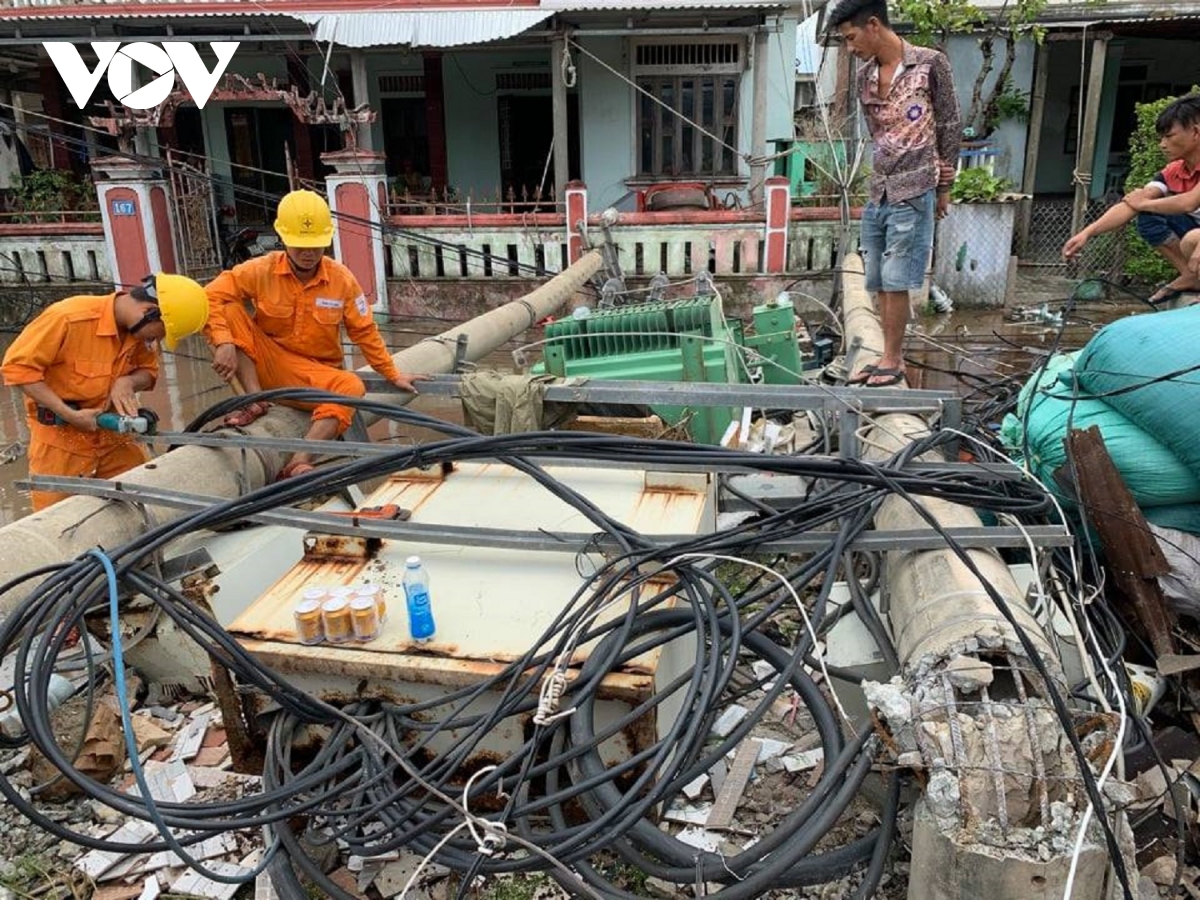 Ông Nguyễn Vinh, Giám đốc Điện lực huyện Hải Lăng, tỉnh Quảng Trị cho biết: “Hiện nay chúng tôi đang tập trung nhân lực khôi phục. Đặc biệt Công ty đã hỗ trợ đội xung kích cùng với điện lực làm thế nào chúng tôi cùng cố gắng khắc phục trong chiều tối hôm nay đóng điện lại phục vụ bà con”.