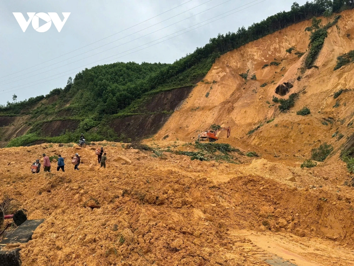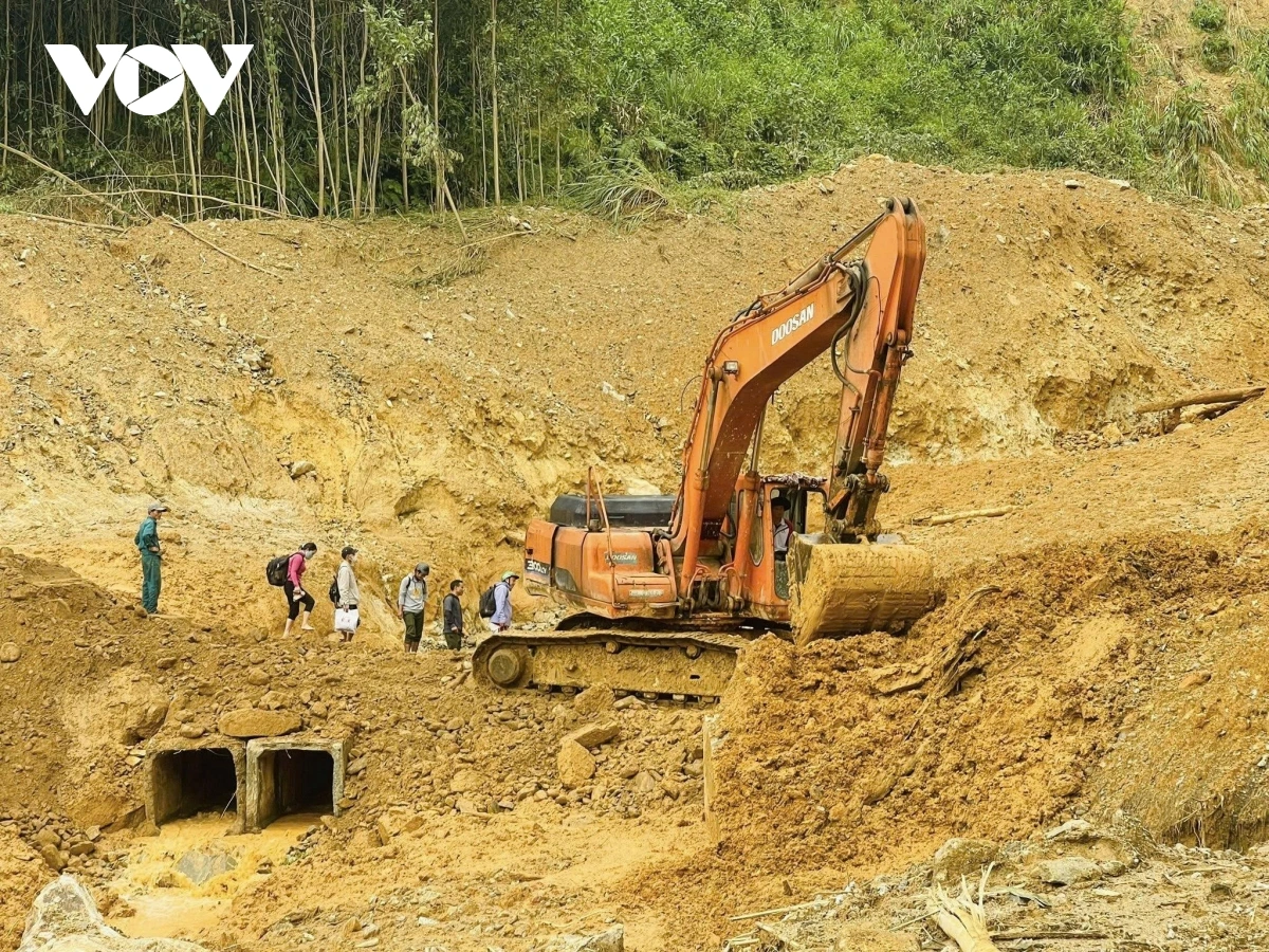 Huy động các phương tiện cơ giới khai thông các tuyến bị sạt lở