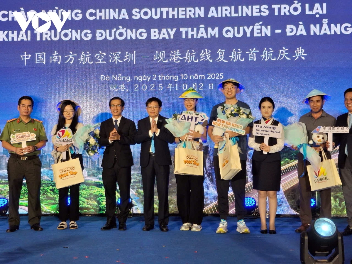VOV.VN - Việc Hãng hàng không China Southern Airlines khai trương đường bay Thâm Quyến – Đà Nẵng trở lại là dấu mốc quan trọng, hứa hẹn sự tăng trưởng thị trường khách Trung Quốc đến Đà Nẵng trở lại trong thời gian tới.