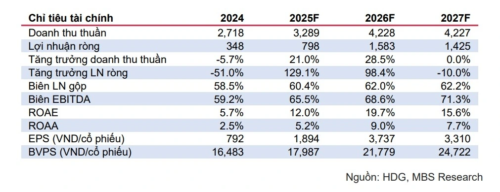 Công ty Chứng khoán MB (MBS) dự báo lợi nhuận (LN) ròng Quý 3/2025 của CTCP Tập đoàn Hà Đô (HDG - HSX) sẽ tăng trưởng ~7% so với cùng kỳ, trong đó, động lực chính vẫn đến từ huy động thủy điện tích cực. Mặt khác, áp lực trích lập dự phòng, cùng lỗ tỷ giá vẫn duy trì, tuy nhiên sẽ nhẹ nhàng hơn giai đoạn Quý 2/2025. Trong Quý 3/2025, nhiều khả năng HDG chưa ghi nhận doanh thu từ bàn giao Charm Villa, MBS cho rằng, tăng trưởng giai đoạn Quý 4/2025 sẽ bùng nổ hơn hỗ trợ bởi bàn giao dự án BDS đặc biệt từ mức nền rất thấp Quý 4/2024 do trích lập dự phòng lớn.