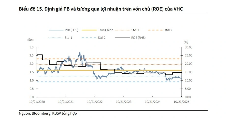 Tác động của thuế đối ứng và vụ kiện CBPG đã khiến cổ phiếu FMC giảm 20% trong thời gian qua. Định giá PE và PB của doanh nghiệp hiện lần lượt là 7.7 lần và 1.09 lần, thấp hơn lần lượt 20% và 30% so với trung bình 5 năm. KBSV khuyến nghị mua đối với cổ phiếu FMC với định giá hợp lý là 44.200 đồng/cổ phiếu, tương đương tiềm năng tăng giá là 21%.