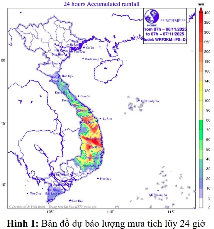 Theo Trung tâm Dự báo Khí tượng Thủy văn Quốc gia, từ ngày 6-7/11, khu vực từ Đà Nẵng đến Đắk Lắk có mưa rất to với tổng lượng mưa phổ biến 200-400mm, có nơi trên 600mm.