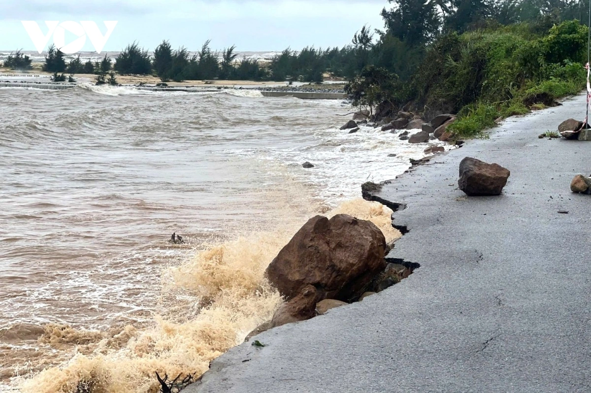 Tại xã Phú Lộc, triều cường và sóng lớn làm hư hỏng tuyến đường ven biển khu vực thôn Tân An Hải, gây sạt lở hệ thống rọ đá và bờ kè dài khoảng 30m, tạo hàm ếch sâu hơn 1m. UBND thành phố Huế đã ban hành quyết định công bố tình huống khẩn cấp thiên tai để khắc phục thiệt hại. Chính quyền đang khẩn trương triển khai biện pháp gia cố tạm thời, bảo đảm an toàn tính mạng và tài sản cho người dân.