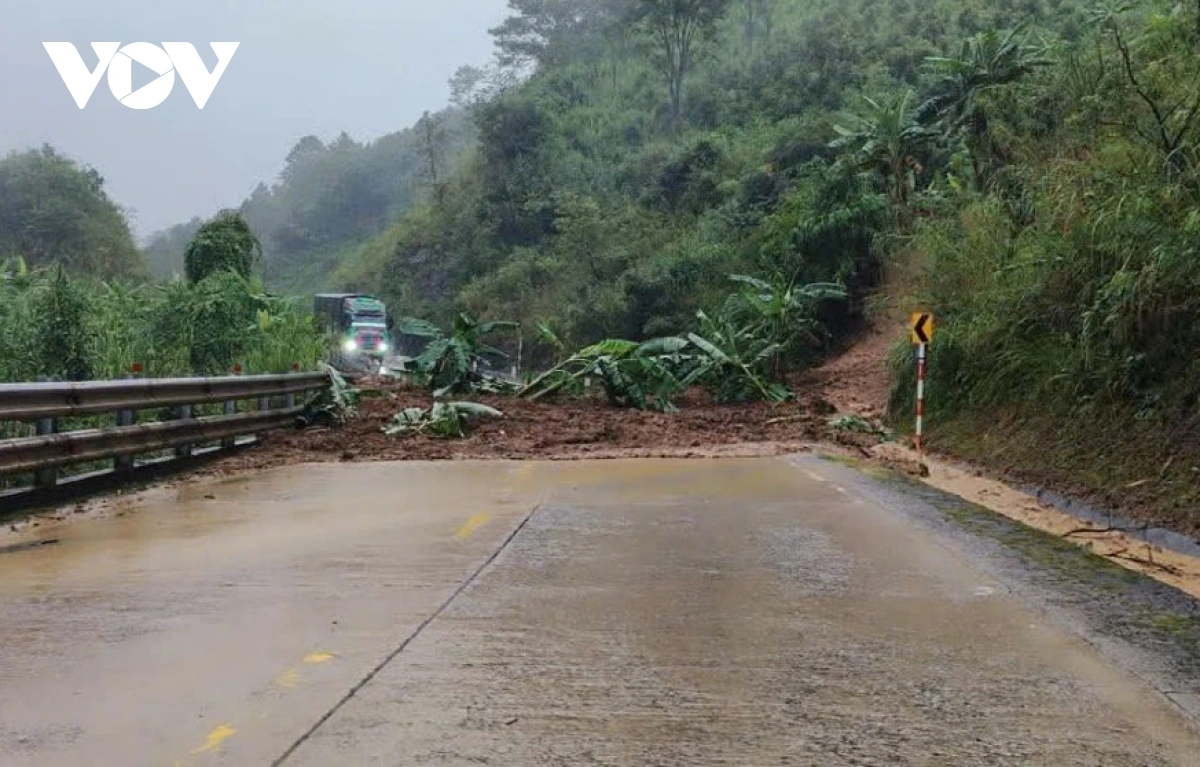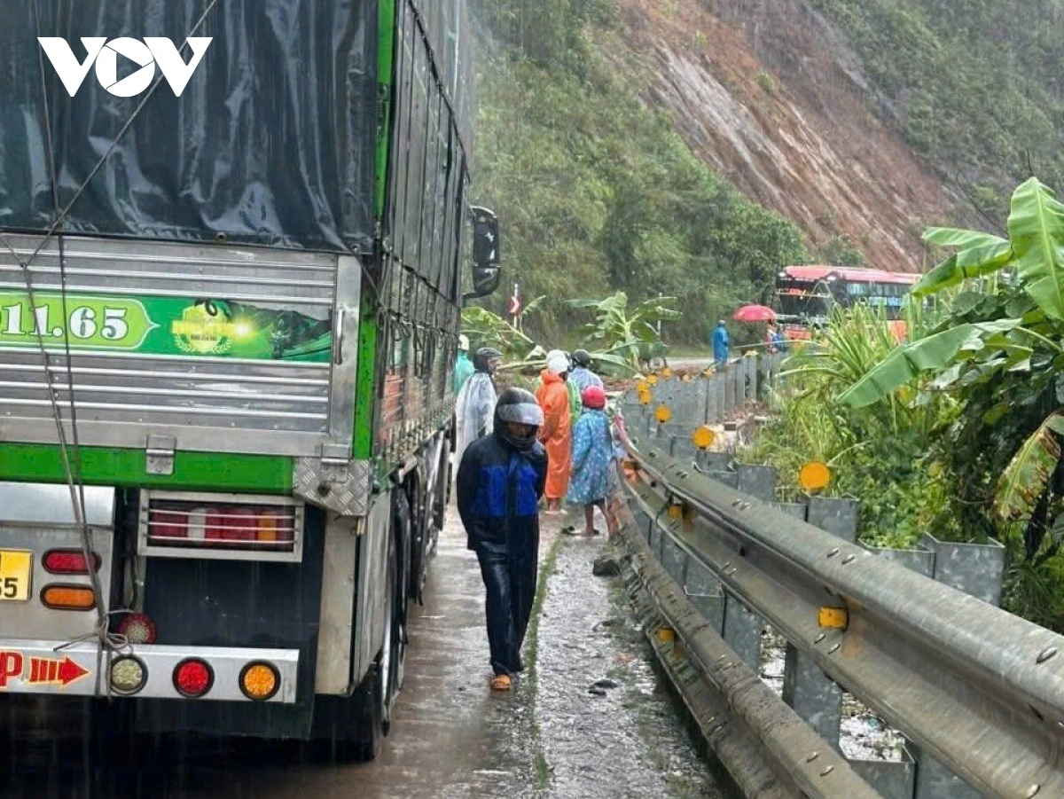 Mưa lớn gây sạt lở đất, ách tắc giao thông đường Hồ Chí Minh địa phận Quảng Ngãi