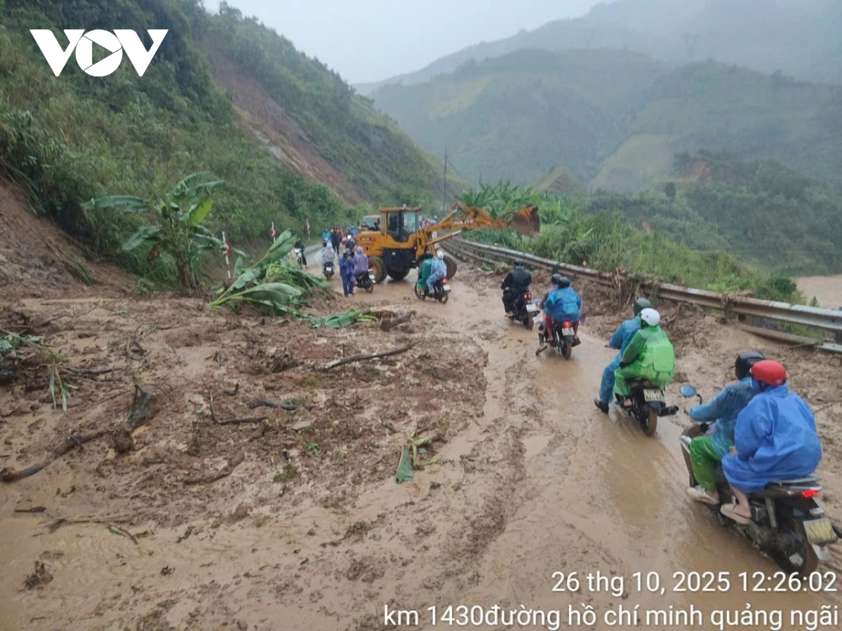 Theo báo cáo từ Khu Quản lý đường bộ III (thuộc Cục Đường bộ Việt Nam), các đoạn đường trên tuyến đường Hồ Chí Minh qua Đà Nẵng và Quảng Ngãi đã có hàng chục điểm sạt lở, trong đó một số vị trí rất nghiêm trọng. Tại xã Đăk Plô (Quảng Ngãi), điểm sạt lở tại Km 1409+100 với hơn 1.400 m³ đất đá đã tràn xuống mặt đường. Tại xã Phước Năng (Đà Nẵng), khối lượng ước tính hơn 2.400 m³ đất đá đã khiến tuyến đường tê liệt toàn bộ.