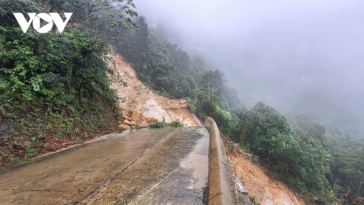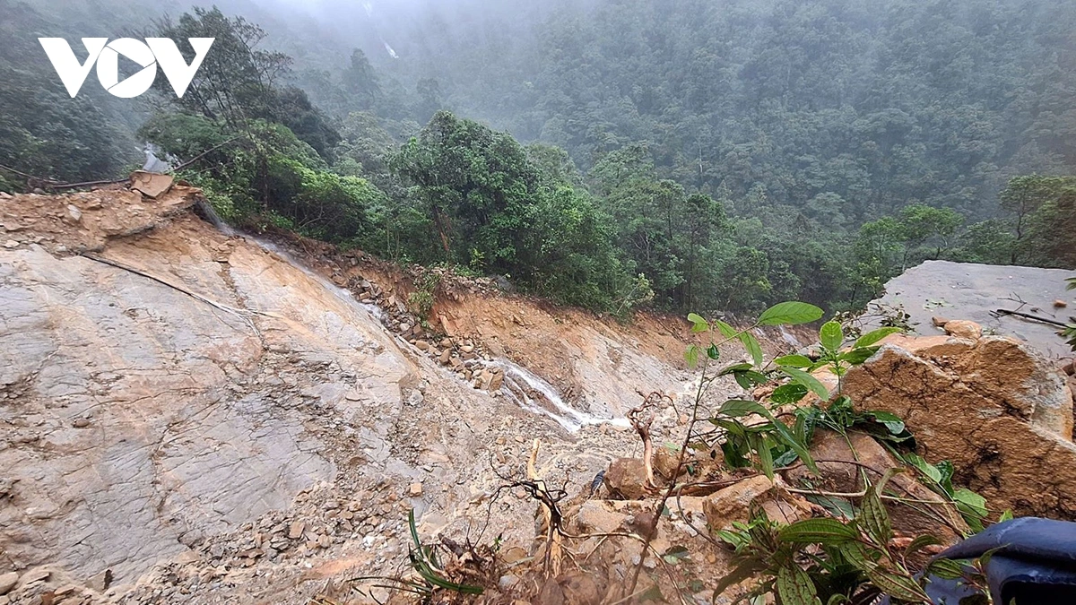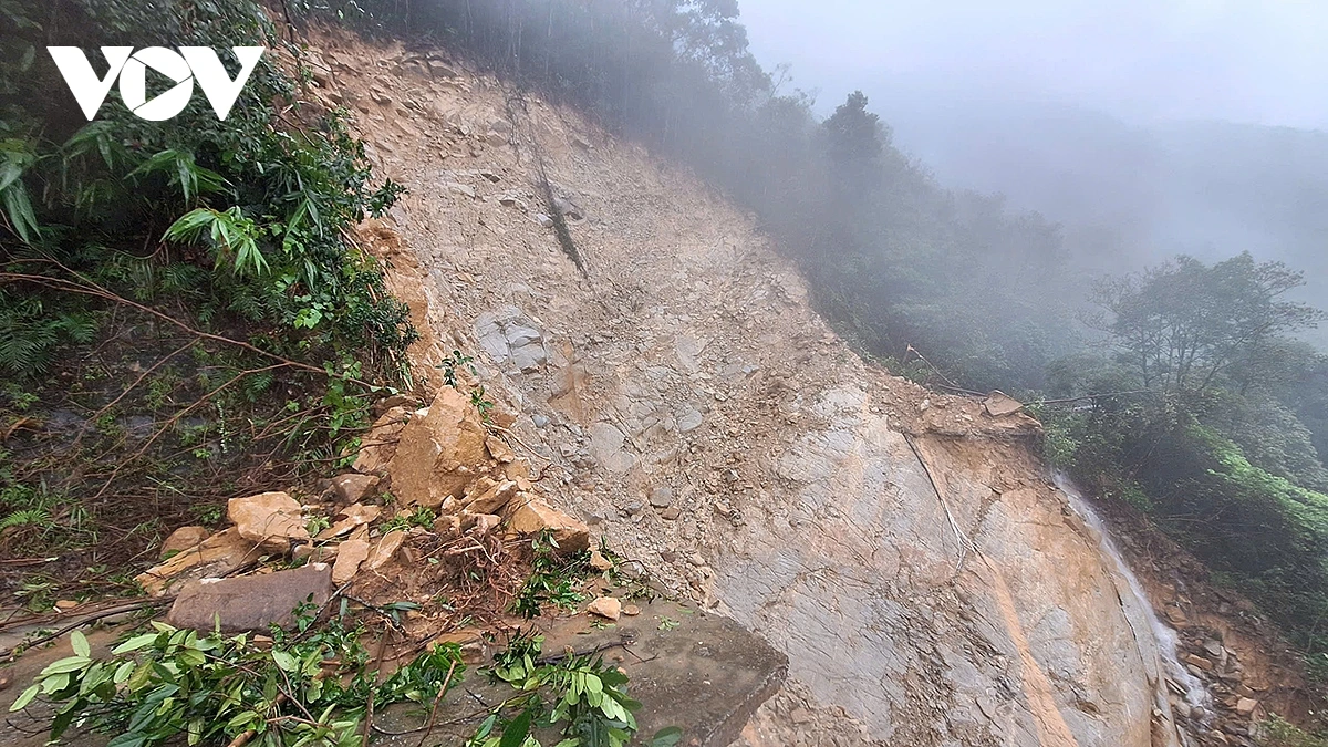 VOV.VN - Đợt mưa lớn kéo dài từ ngày 26 đến nay với lượng mưa lên đến 1.739,6 mm, cao nhất từng ghi nhận tại khu vực Vườn quốc gia Bạch Mã (thành phố Huế) đã gây sạt lở nghiêm trọng trên đường dẫn lên đỉnh Bạch Mã, chia cắt hoàn toàn giao thông tại km12+00.