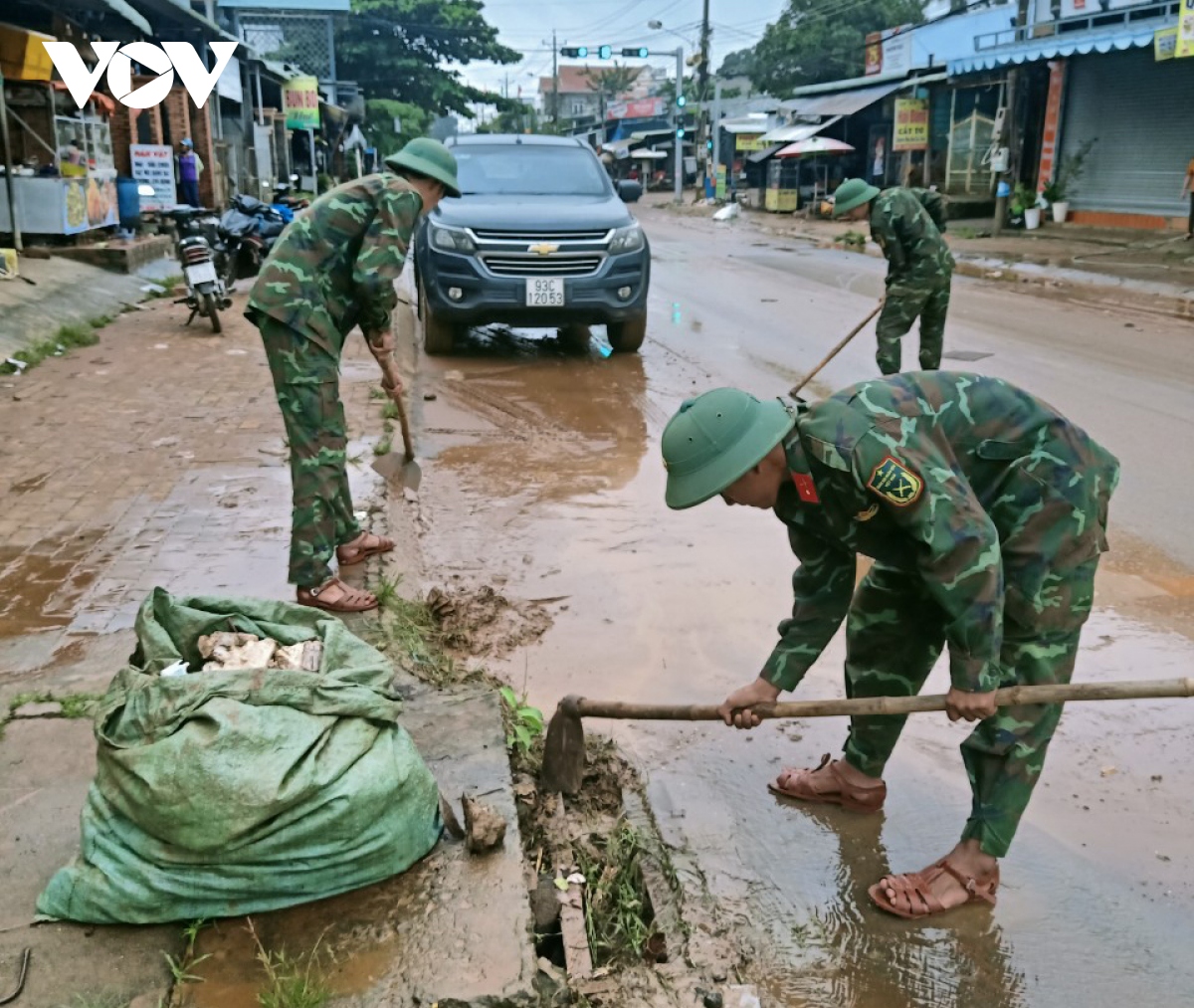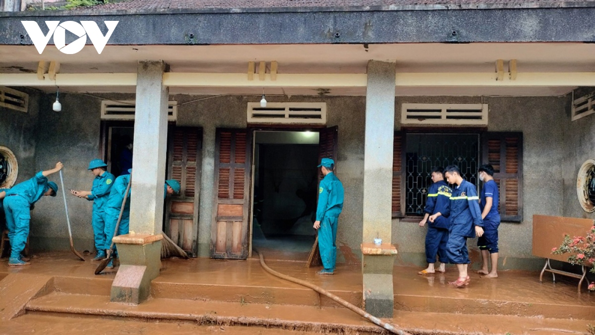 VOV.VN - Sáng nay (28/7), Ban Chỉ huy Phòng chống thiên tai và Tìm kiếm cứu nạn huyện Bù Đăng, tỉnh Bình Phước đang huy động lực lượng giúp người dân dọn, vệ sinh nhà cửa sau khi bị ngập lụt sau trận mưa lớn chiều tối qua.