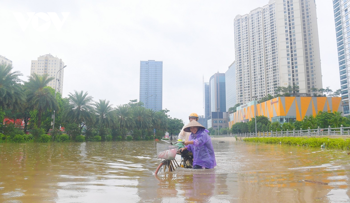 VOV.VN - Tại nhiều khu dân cư trên địa bàn Hà Nội, người dân đang phải tìm đủ cách để ngăn nước tràn vào nhà khi mưa lớn kéo dài từ đêm qua đến sáng nay khiến nhiều tuyến phố ngập sâu.
