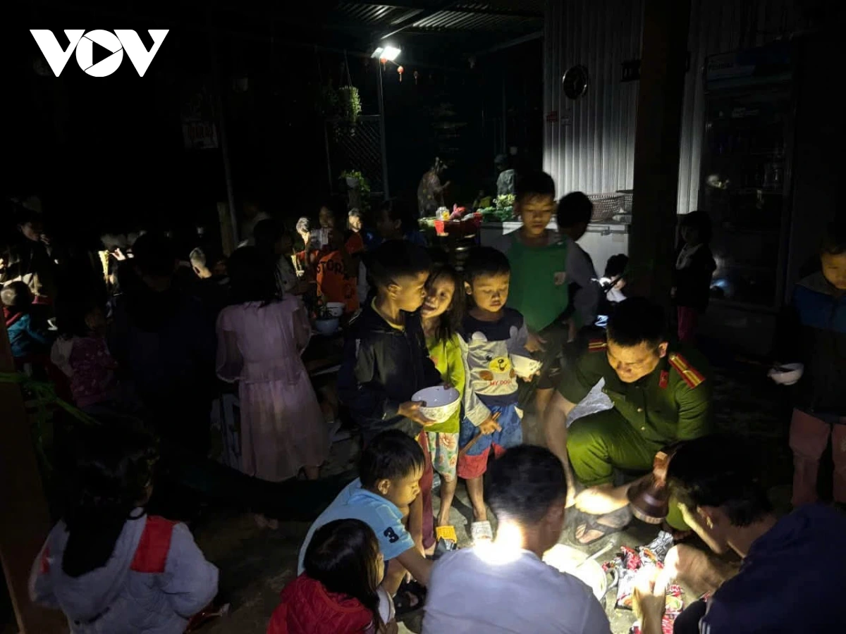 Người dân ven suối thôn Trà Leng 1, xã Trà Leng, TP. Đà Nẵng được di dời đến nơi an toàn trong đêm.