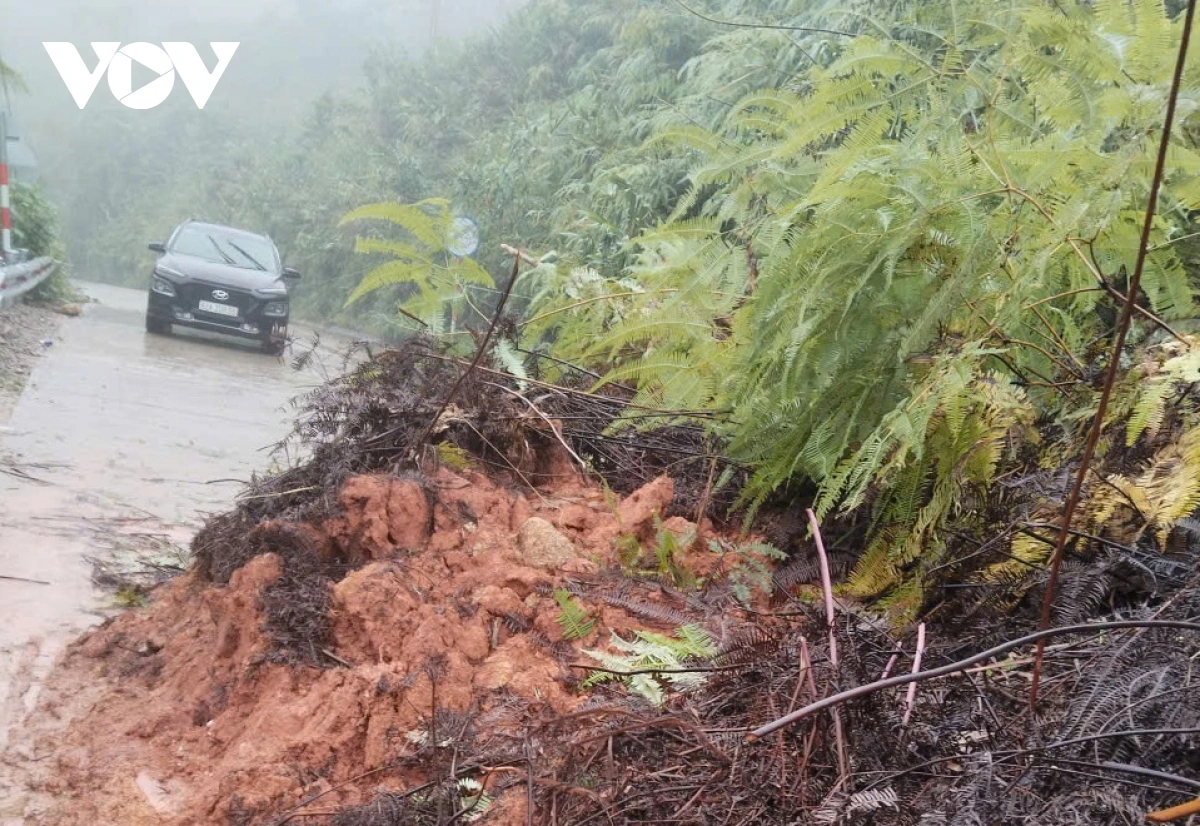 Sạt lở Quốc lộ 24C qua xã Bắc Trà My, TP Đà Nẵng sạt lở tắc đường.