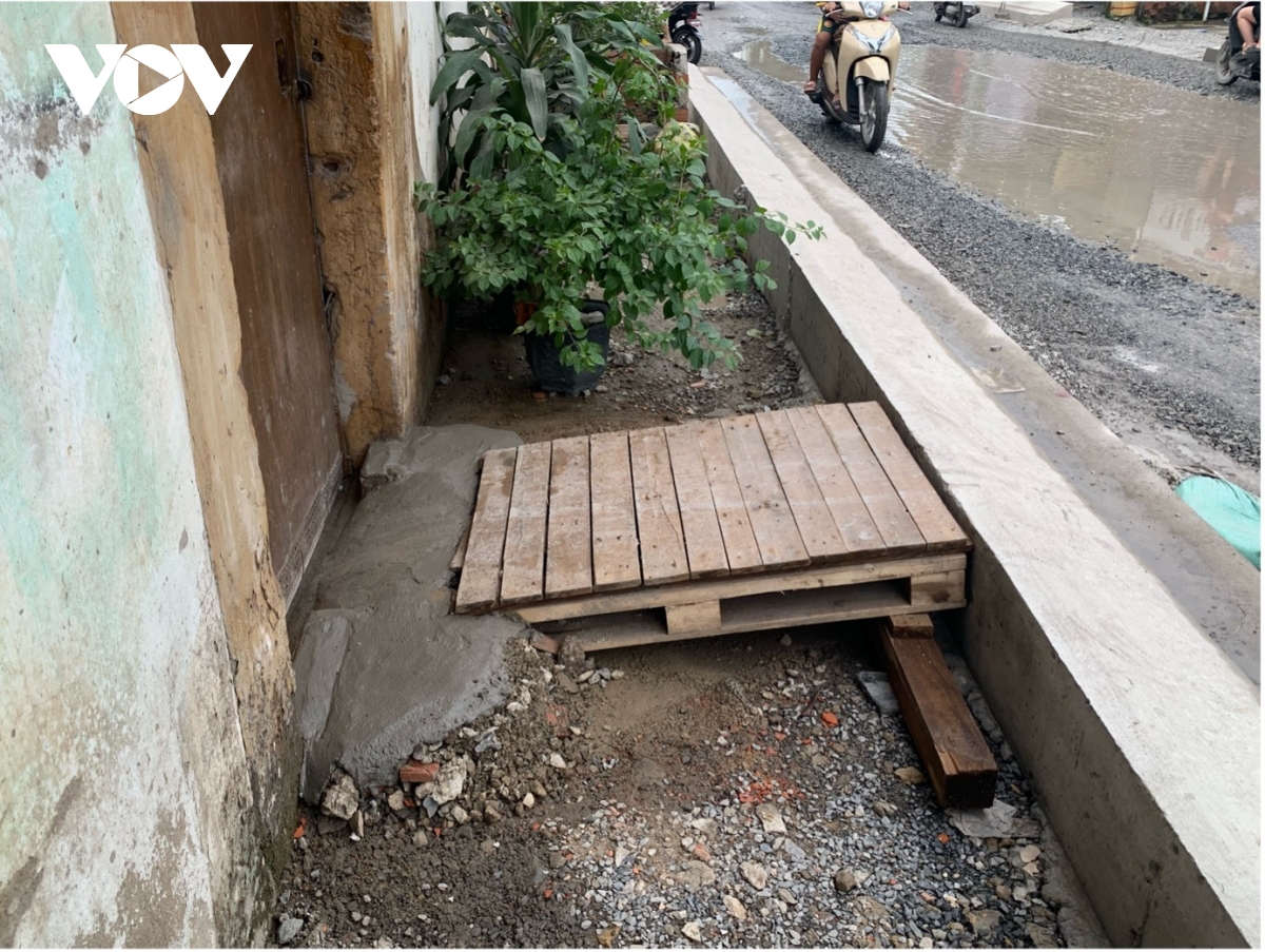 Lối ra vào của một hộ dân vừa được xây, xi măng vẫn chưa khô.